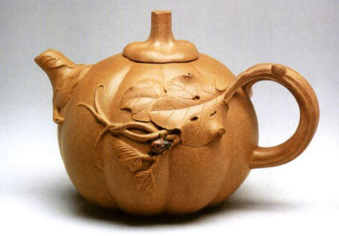 塑器造型一般稱為“花貨”,是對雕塑性器皿及帶有浮雕、半圓雕裝飾器皿造型的統(tǒng)稱。將生活中所見的各種自然形象和各種物象的形態(tài)透過藝術(shù)手法,設(shè)計成器皿造型,如將松竹梅等形象制成各種樹樁形造型?;蛘呤窃趫A器及方器選型上運用雕、鏤、捏塑等手法,將自然形體變化為造型的部份,如壺的嘴、把、蓋、鈕,或者是在造型的顯見部位施以簡潔的堆雕裝飾。壺體上這些堆雕,總是要求寧簡勿繁,做到主次分明,以達(dá)到視覺上的和諧與平衡。這種壺藝造型規(guī)則是“源于自然,而高于自然,造型不僅應(yīng)具有適度性的藝術(shù)夸張,又應(yīng)著意于風(fēng)格瀟灑”。例如此類壺藝以松竹梅為裝飾題材時,勁松要刻劃出枝干勁拔,針葉挺秀,氣勢鏗鏘;秀竹則要求嫻靜有致,俊逸瀟灑;冬梅又須主干蒼勁,寒中獨俏,素枝閑花,以簡為主,達(dá)到疏中見密,少里寓多,富有活力氣息的藝術(shù)效果。所以,紫砂塑器不僅應(yīng)形象生動,構(gòu)圖簡潔,而且應(yīng)巧妙地利用紫砂泥料的天然色澤來增強其藝術(shù)效果。