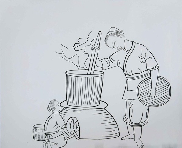 蒸芽:宋代貢茶制作工序,在撿芽之后,用蒸汽高溫熟化茶青。
