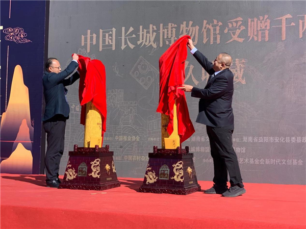 安化縣人民政府向長(zhǎng)城博物館贈(zèng)送由安化縣出品的《萬里長(zhǎng)城千兩茶》