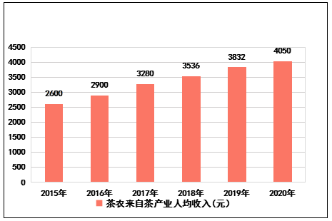 茶葉作為精準(zhǔn)扶貧的重要產(chǎn)業(yè)之一,在云南脫貧攻堅戰(zhàn)中發(fā)揮了重要作用,全省茶產(chǎn)業(yè)涉及茶農(nóng)600多萬人,“十三五”期間,茶農(nóng)來自茶產(chǎn)業(yè)人均收入年均增長率達(dá)9.2%,2020年,人均茶產(chǎn)業(yè)收入達(dá)4050元,人均比上年增收218元,增5.7%。比2015年增加1450元,增幅達(dá)56%,茶產(chǎn)業(yè)為精準(zhǔn)脫貧做出了積極貢獻(xiàn)。